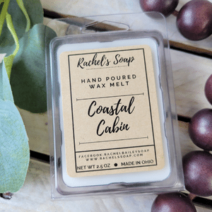The Coastal Cabin wax melt is my first custom-blended fragrance oil. I love the complex notes of grapefruit and citrus wrapped in sweet tobacco that melts into a woody oceanic blend of vanilla, cedarwood, white musk, and sandalwood on a background of calming patchouli.