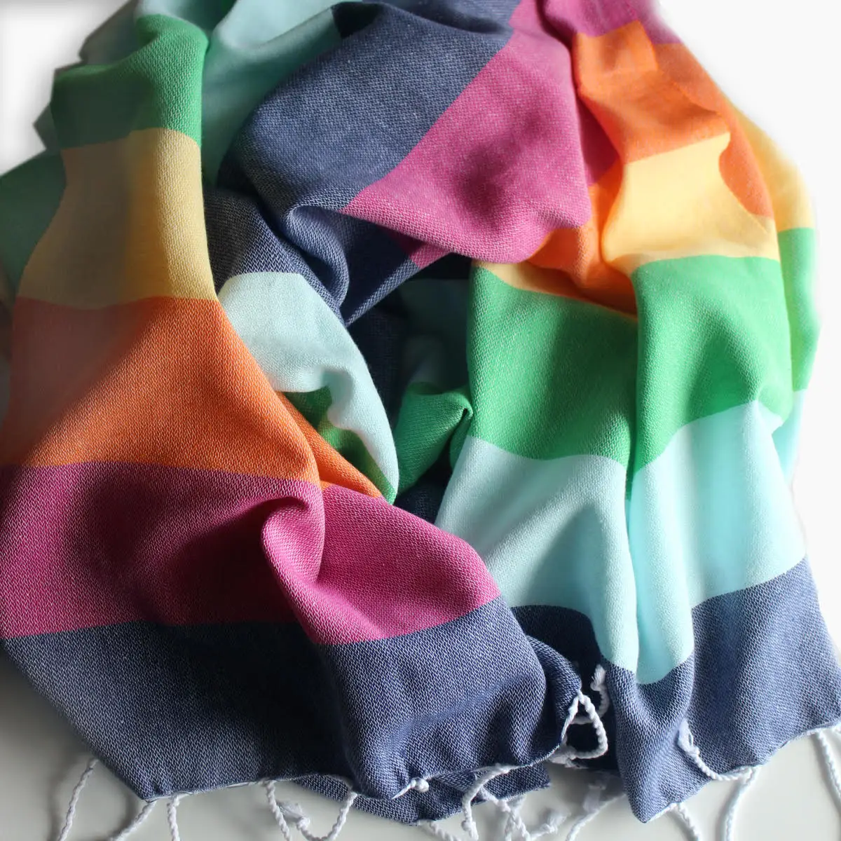 In this gift box, we pair a Rainbow bar soap, a Rainbow lip balm, and a beautiful Rainbow handwoven Turkish Towel. All of these original Pestemal towels are hand-loomed exclusively in Turkey. Lightweight, incredibly soft, and absorbent. They make perfect bath towels or beach blankets, are ideal for travel lovers, and can even be used as a fashion accessory.